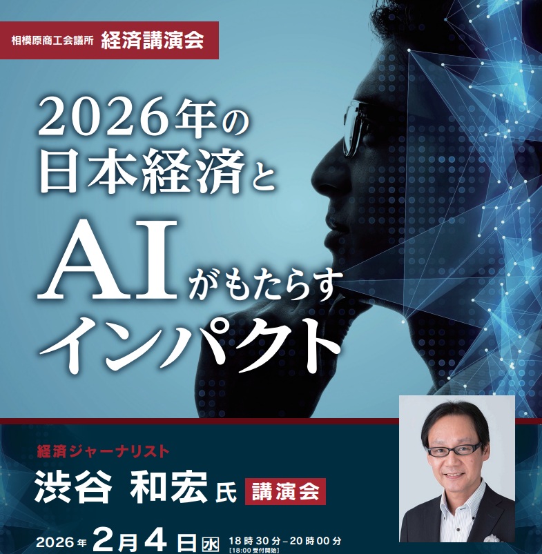 各メディアでコメンテーターとして活躍する渋谷和宏氏を講師に招き、経済やビジネスに大きなインパクトを与えるAI技術の進化についても触れながら、2026年の日本経済を展望します。新しい年に私達はどう挑んでいくべきか、ヒントが得られる講演会です。ぜひお気軽にご参加ください。