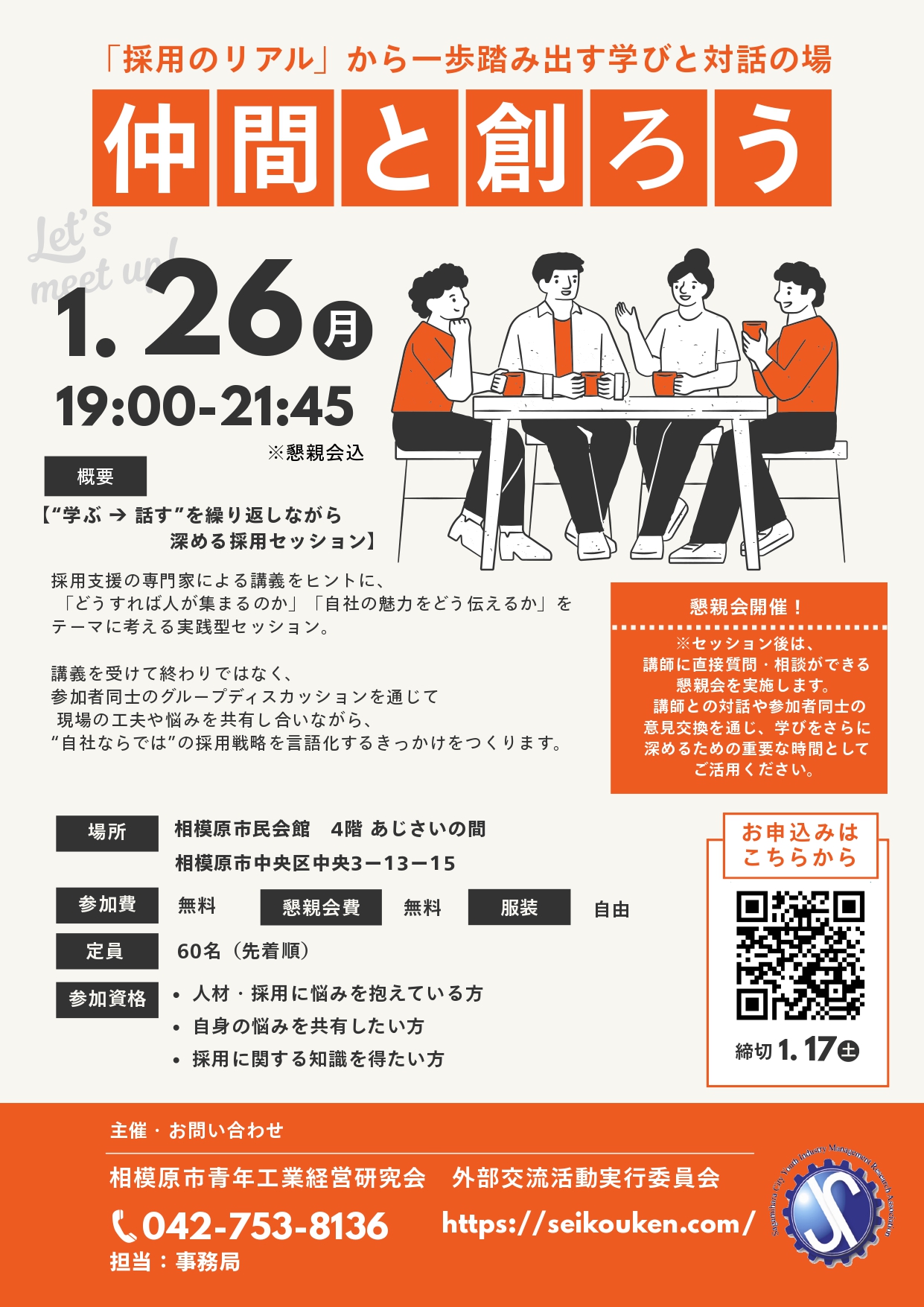 1月26日(月) 19:00-21:45 ※懇親会込 |