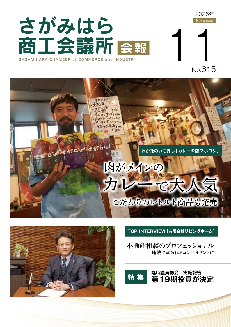 相模原商工会議所会員企業向けの機関誌です。会員企業のご紹介のほか、地域経済の動向や月々の会議所事業、専門家からのアドバイスなど経営に役立つ情報が満載です。
