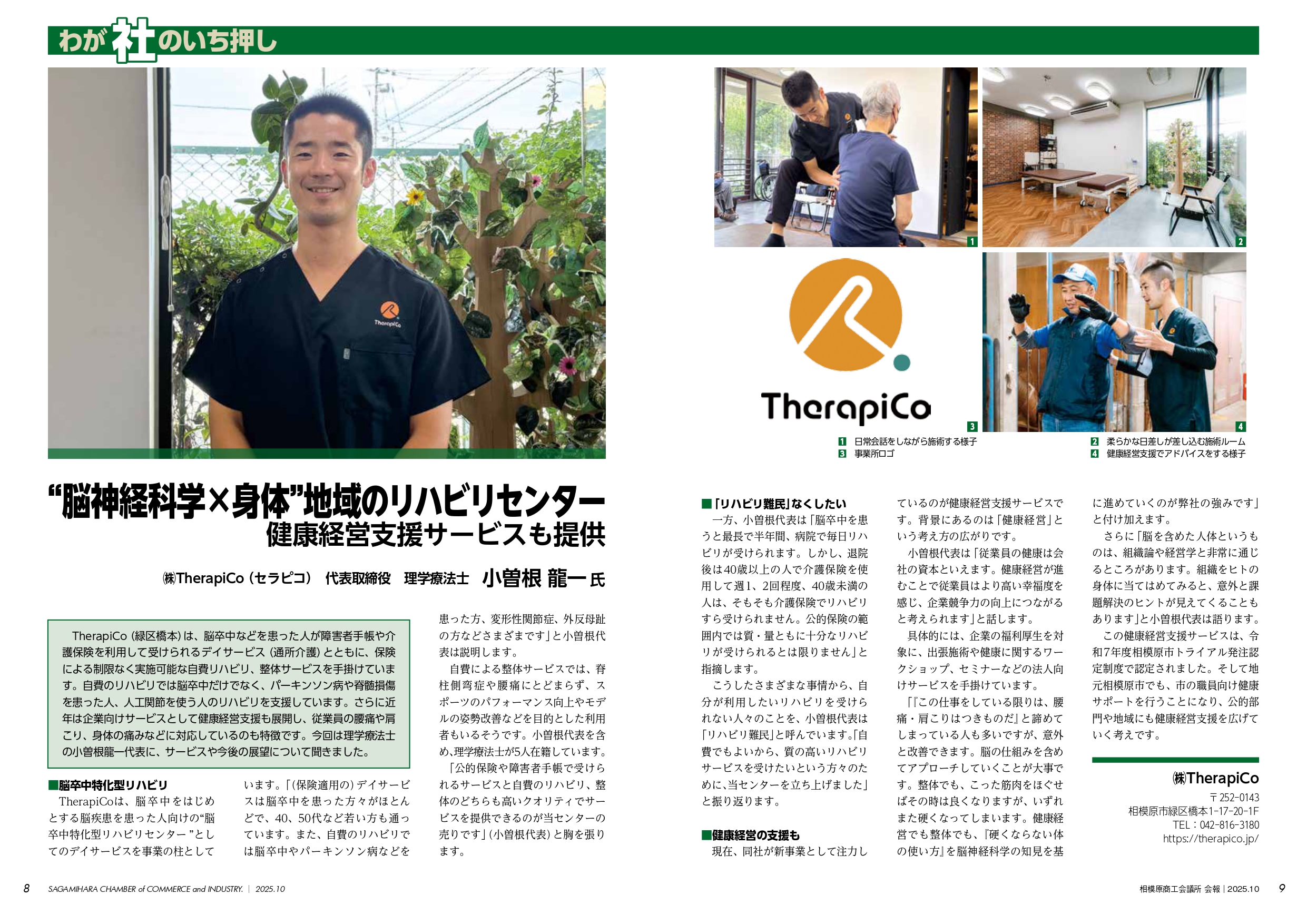 「“脳神経科学×身体”地域のリハビリセンター健康経営支援サービスも提供」 株式会社TherapiCo 代表取締役 理学療法士 小曽 根龍一さん  |