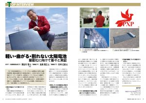 「軽い・曲がる・割れない太陽電池量産化に向けて着々と実証」 株式会社PXP 代表取締役社長CEO 栗谷川 悟さん 取締役CFO 友清 寛之さん 取締役CTO 杉本 広紀さん  |