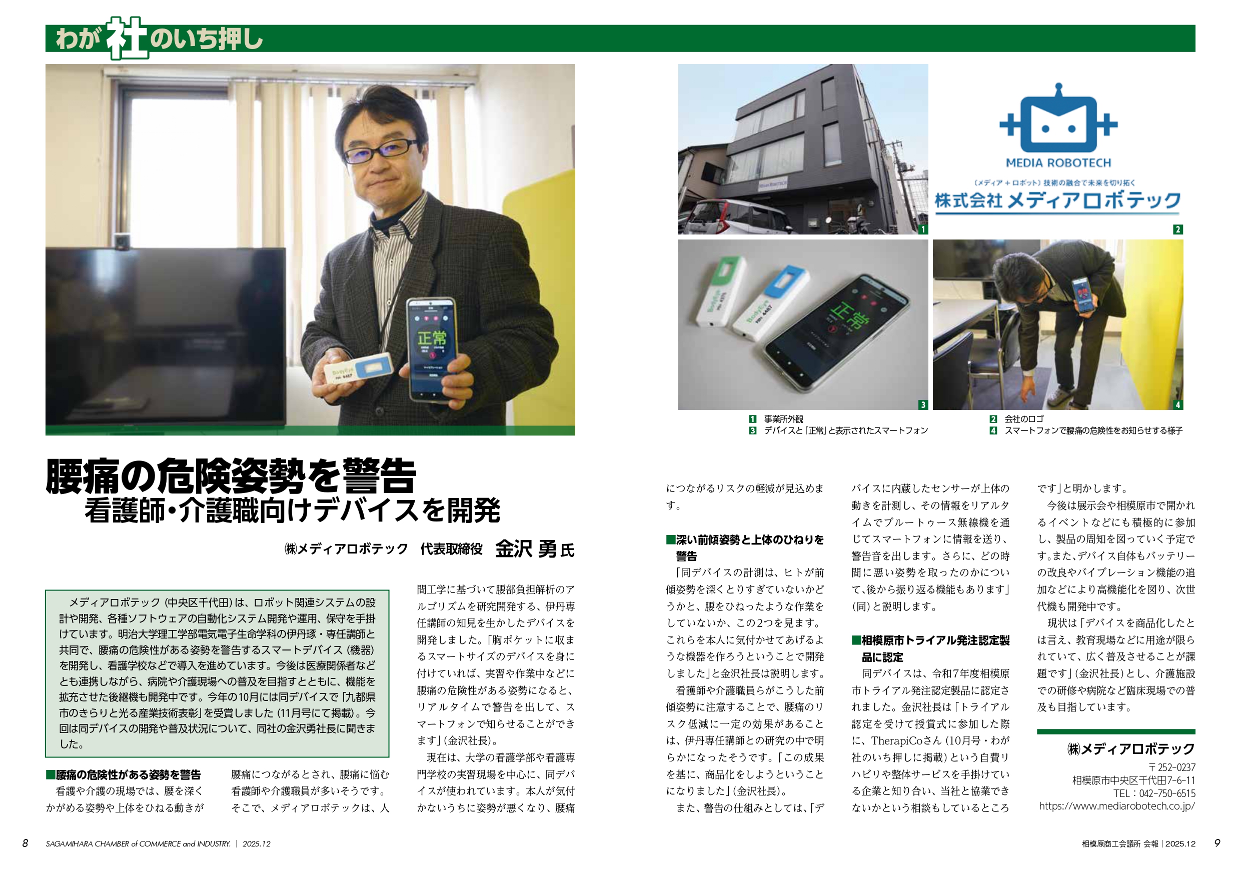 「腰痛の危険姿勢を報告看護師・介護職向けデバイスを開発」 株式会社メディアロボテック 代表取締役 金沢 勇さん |