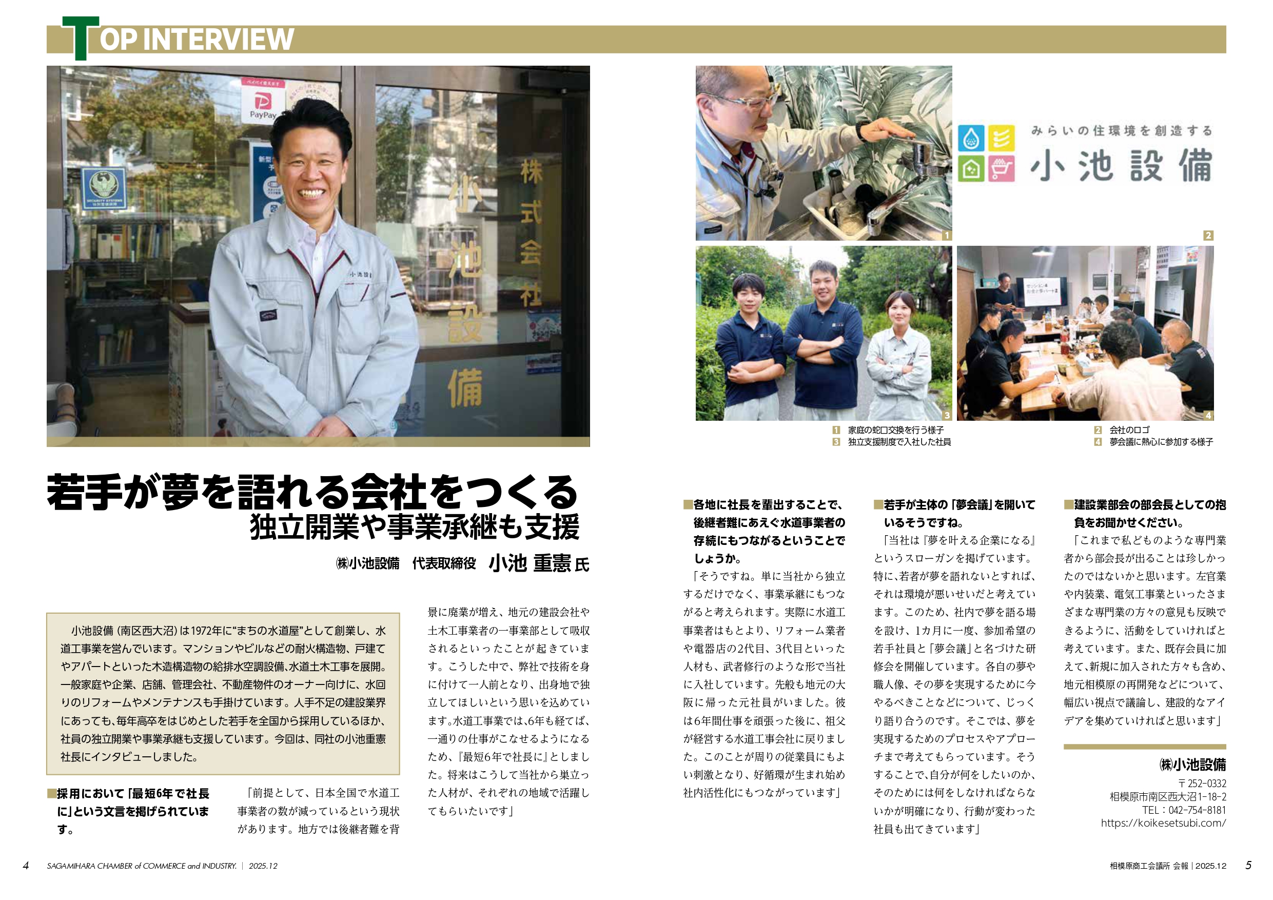 「若手が夢を語れる会社をつくる独立開業や事業承継も支援」 株式会社小池設備 代表取締役 小池 重憲さん |